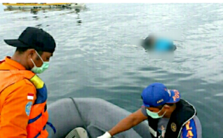 Korban ditemukan nelayan sedang terapung dengan kondisi mayat sudah membengkak dan tertelungkup menggunakan pakaian baju biru dan celana hitam.