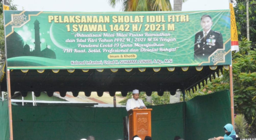 “Pelaksanaan Sholat Ied, kita ikuti imbauan dan arahan pemerintah bahwa Sholat Ied tetap dilakukan dengan mematuhi protokol kesehatan yang diperketat dan dilakukan di lapangan terbuka, untuk menjaga agar penyebaran virus covid-19 tidak terjadi”, ungkap Danrem.