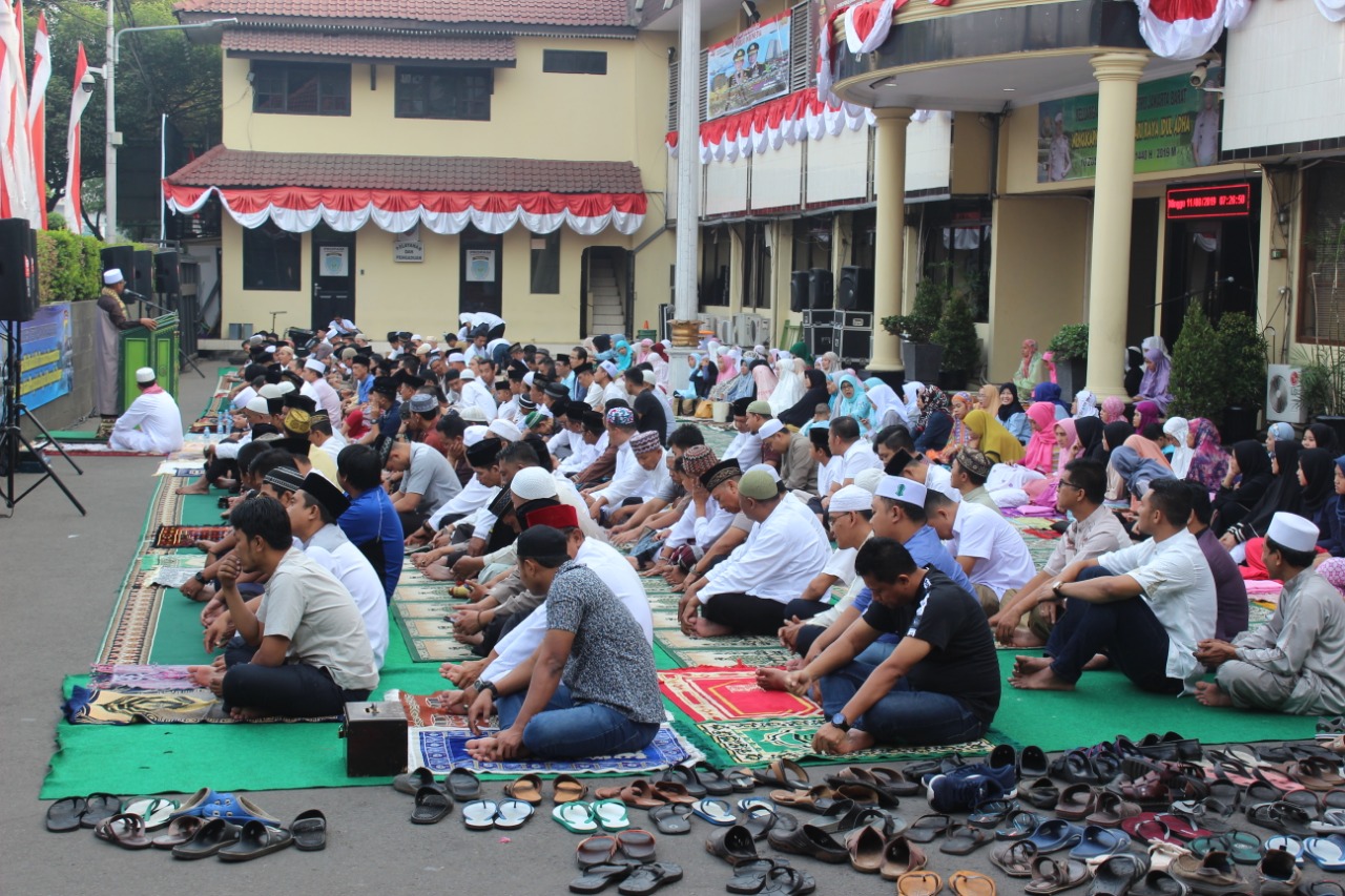 Portalindo.co.id, Jakarta Barat — Takbir berkumandang menyambut hari raya Idul Adha 1440 H, Polres Metro Jakarta Barat dan jajaran bersama masyarakat sekitar melaksanakan sholat Idul Adha di halaman Mapolres , Minggu (11/8/2019).