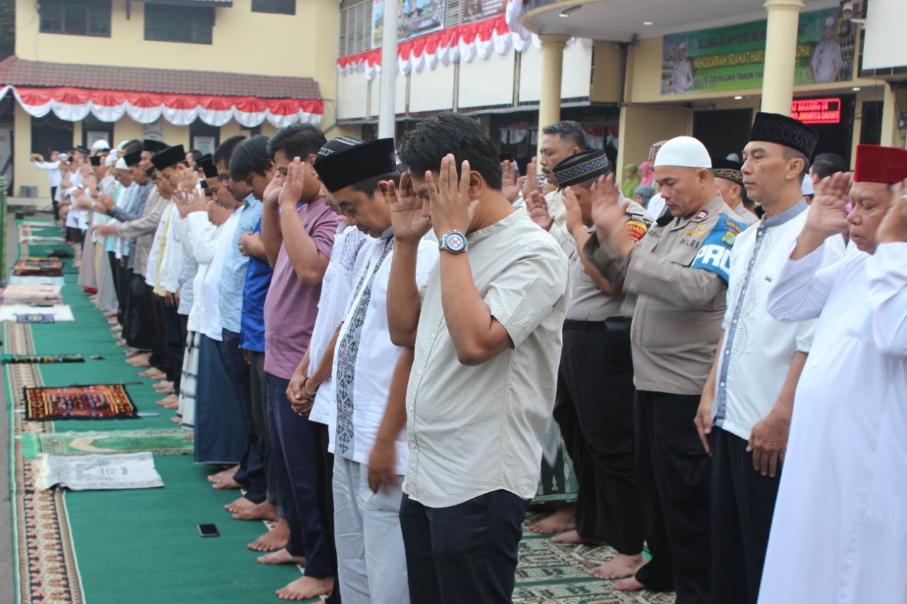Salat Idul Adha dihadiri oleh Kapolres Metro Jakarta Barat Kombes Pol Hengki Haryadi SIK MH, Wakapolres Metro Jakarta Barat AKBP Hanny Hidayat SIK MH, PJU Polres Metro Jakarta Barat, Kapolsek Jajaran, Anggota Polres Metro Jakarta Barat, dan warga sekitar.