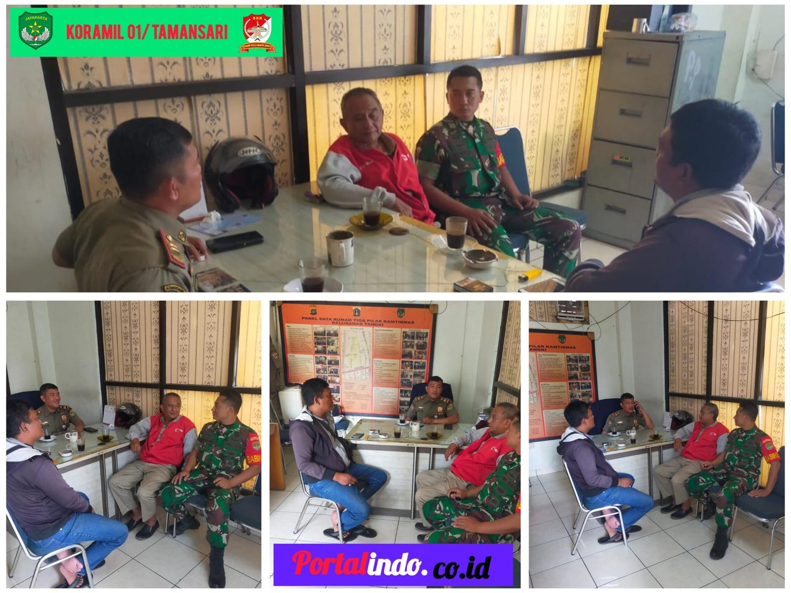 Portalindo.co.id | Kodam Jaya, Jakarta Barat _ Dalam rangka memperkuat sinergitas di wilayah, personil Koramil 01/Tamansari Kodim 0503/JB, Serka Suharno Babinsa Kelurahan Tangki melakukan Komunikasi Sosial (Komsos) dengan Satpol PP di Kantor Pol PP Jalan Mangga Besar VII, RT. 002/002, Kelurahan Tangki, Kecamatan Tamansari Jakarta Barat pada Rabu, 19 November 2025.
