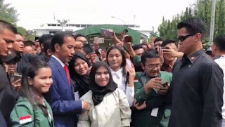 Portalindo.co.id-Presiden Jokowi mendapat sambutan yang meriah dari mahasiswa USU saat menghadiri undangan  Dies Natalis ke-66 universitas sumatera utara (USU), mereka berebut untuk berfoto dengan jokowi.