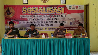 Sosialisasi Peraturan Presiden Nomor 87 Tahun 2016 Tentang Satgas Saber Pungli dilaksanakan di Aula Kantor Kecamatan Mandalle Kabupaten Pangkep,