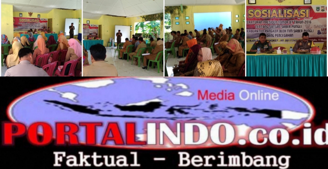 Portalindo.co.id, Pangkep – Wakil Bupati Pangkep Syahban Sammana membuka sosialisasi Peraturan Presiden Nomor 87 Tahun 2016 Tentang Satgas Saber Pungli yang di dampingi oleh Wakapolres Pangkep Kompol Sukri Abham, SH, MH, selaku ketua UPP Saber Pungli Kab. Pangkep, Selasa, 11 Desember 2018,