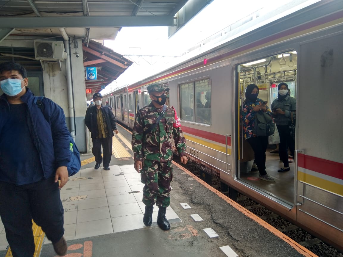 “Kami berharap kepada seluruh pengguna KRL dapat mematuhi dan menerapkan protokol kesehatan sesuai peraturan yang telah di tetapkan pemerintah.” Kata Kapten Edy Moerdoko di Makoramil Cengkareng.