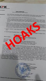Menurut Setyo, pihaknya sudah mengonfirmasi ke KPK bahwa surat tersebut hoaks. “Sudah ada pernyataan dari KPK, surat itu kan ada kode-kode tersendiri,” jelas dia.
