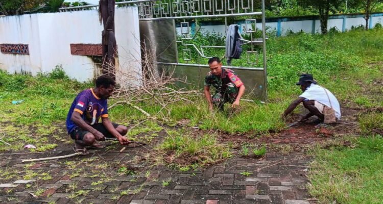 PORTALINDO.CO.ID, Timika ~ Dalam rangka menjaga kebersihan dan kerapian lingkungan, Babinsa Koramil