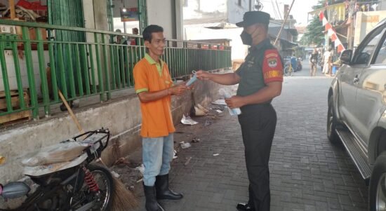 Babinsa Koramil 01/Tamansari Bagi Masker
