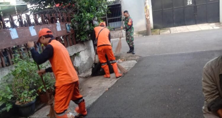 Babinsa Koramil 01/Tamansari bersama PPSU Karya Bakti Bersihkan Lingkungan
