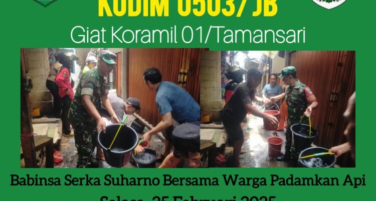 Babinsa Koramil 01/Tamansari Tanggap dan Gerak Cepat Bantu Damkar Padamkan Si Jago Merah