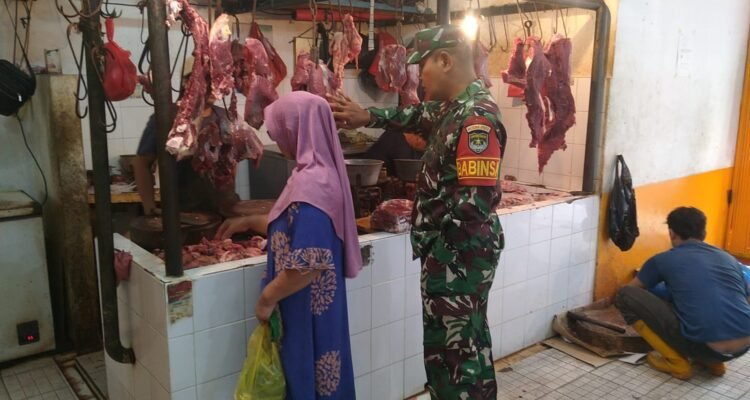 Babinsa Serka Kusnodin Pantau Harga Sembako Di PD Pasar Gang Kancil