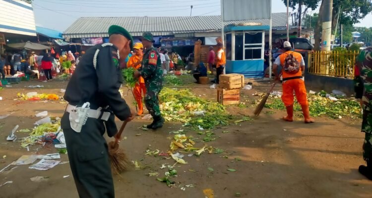 Karya Bakti Koramil Pulogadung Bersama Pengurus PD. Pasar Jaya Bersihkan Area Pasar