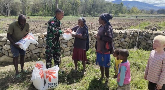 PORTALINDO.CO.ID, Wamena – Pasiter Kodim 1702/Jayawijaya Lettu Inf Pieter Walalayo menyerahkan Bantuan