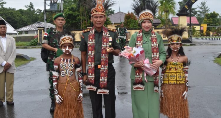 Kodim 1710/Mimika Gelar Tradisi Penyambutan Dandim dan Ketua Persit KCK