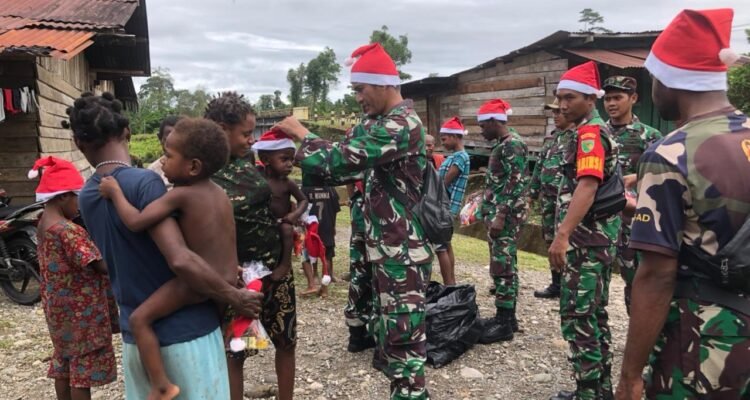 Kodim 1715/ Yahukimo Bagikan Bingkisan Dan Topi Natal