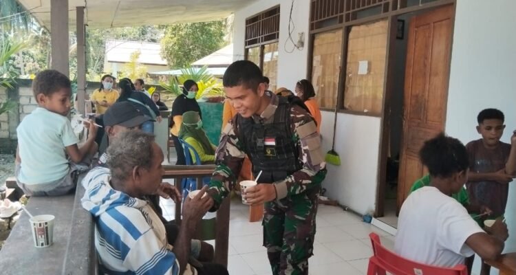 Menyambut HUT RI Ke – 79 Satgas TNI Bersama Tenaga Kesehatan Kota Jayapura Laksanakan Pengobatan Massal Di Kampung Mosso