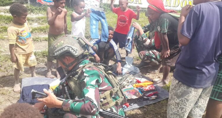 Satgas TNI Peduli Bagikan Baju Gratis Untuk Warga Gigobak