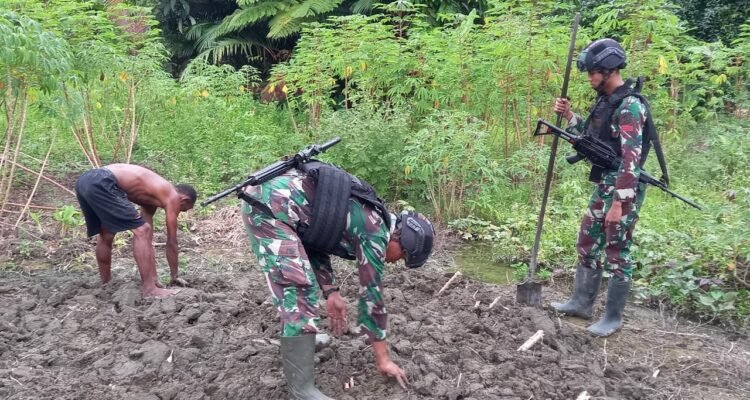 Satgas Yonif 310/KK Bantu Olah Lahan Dan Tanami Singkong Di Ladang Ikonius Kiapra