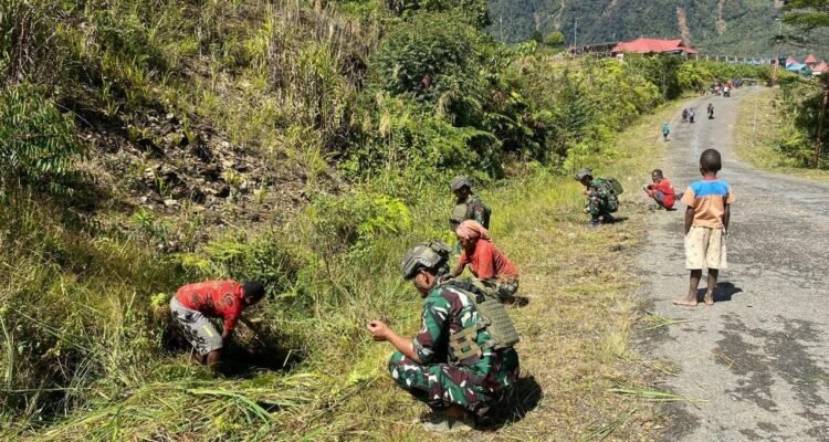 Satgas Yonif 509 Kostrad Bersama Masyarakat Kampung Mamba Intan Jaya Papua Gelar Kerja Bakti Jelang HUT RI ke 79