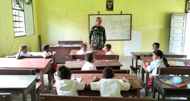 Satgas Yonif 642/Kps Jalin Hubungan Sosial Dan Salurkan Pengetahuan Sebagai Gadik di Wilayah Papua Barat
