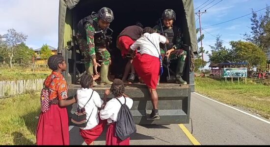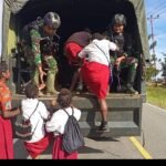 Satgas Yonif Raider 321/GT/13/1 Kostrad Bantu Antar Jemput Anak Sekolah di Papua