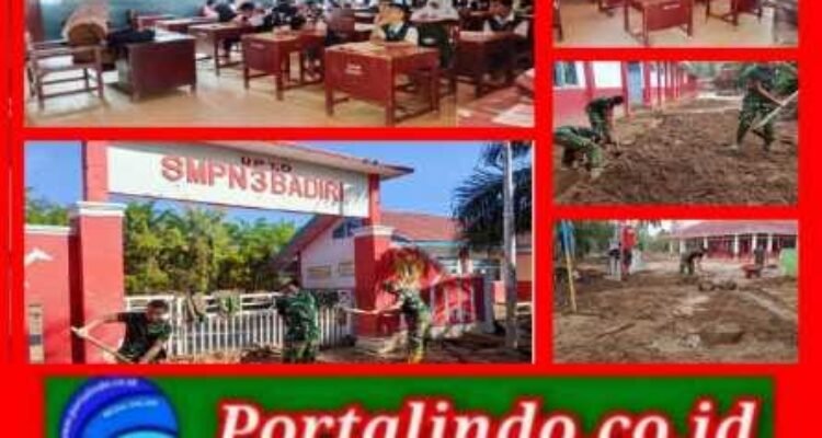 TNI AD Bersihkan SMP Negeri 3 Badiri Pascabanjir Susulan