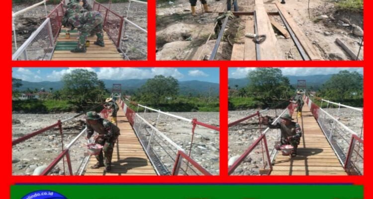 Portalindo.co.id = ACEH TENGGARA, tniad.mil.id – Perbaikan jembatan gantung penghubung Kecamatan