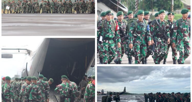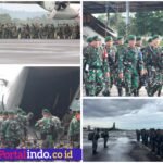 Portalindo.co.id | (Puspen TNI). Yonif 501 Kostrad menggunakan pesawat C-130 Hercules tiba
