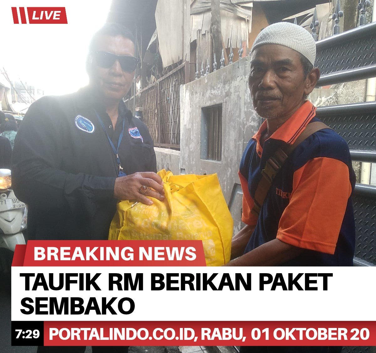 Portalindo.co.id | Jakarta Barat _ Sebagai wujud kepedulian dalam meringankan beban warga yang tertimpa musibah kebakaran, salah seorang wartawan media online portalindo.co.id / portalindonews. com,Taufik RM memberikan bantuan paket sembako secara pribadi kepada salah satu warga di Mangga Besar 9, bapak Maman. Rabu (01/10/2025).