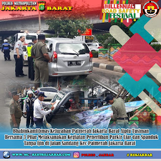 Portalindo.co.id, Jakarta -Polres Metro Jakarta Barat bersama unsur 3 Pilar melaksanakan kegiatan penertiban parkir liar dan spanduk tanpa izin, di Jl Sandang, Kantor Kelurahan Palmerah, Kecamatan Palmerah Jakarta Barat, baru-baru ini.