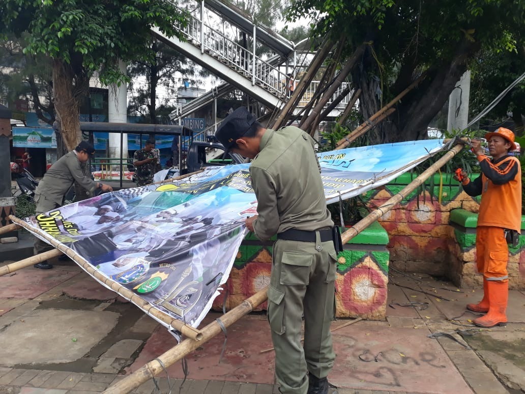 Selanjutnya kendaraan yang parkir sembarangan, terpaksa di derek oleh petugas serta dibawa ke Kecamatan, dengan pengawalan petugas Dishub. Selain itu, spanduk juga diamankan di kelurahan oleh Satpol PP. Kegiatan berjalan lancar, aman dan terkendali.(tem)