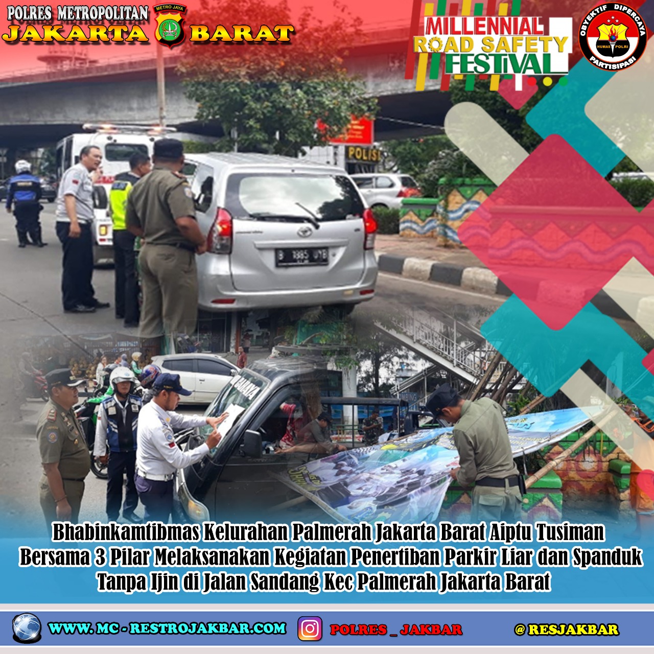 Portalindo.co.id, Jakarta -Polres Metro Jakarta Barat bersama unsur 3 Pilar melaksanakan kegiatan penertiban parkir liar dan spanduk tanpa izin, di Jl Sandang, Kantor Kelurahan Palmerah, Kecamatan Palmerah Jakarta Barat, baru-baru ini.