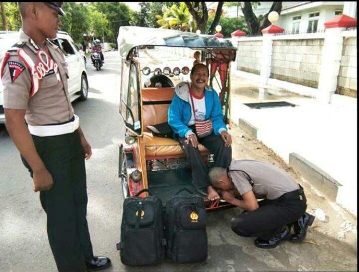 PORTALINDO.CO.ID, MAKASSAR – Saking bangganya, Siswa Diktuk SPN Batua Polda Sulsel atas nama MUH. ASWAR langsung berlutut mencium kaki Ayahnya yang sehari hari berprofesi sebagai Tukang Bentor di Kabupaten Pangkep, Senin 19/11/2018,Siang.