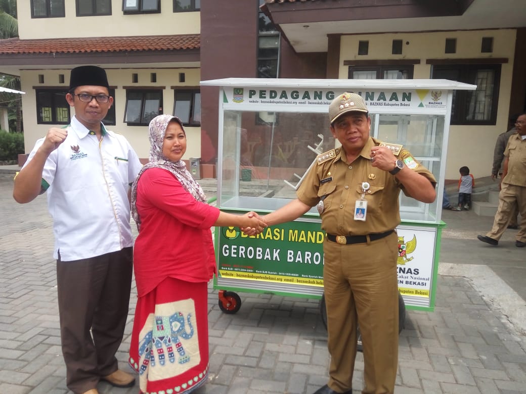 Nasrul 42 Tahun warga kp.garon 03/01 setia laksana dan ibu Mulyana 46 Tahun kp.galian 09/09 Desa Jayabakti yang mendapatkan gerobak untuk usahan jual bakso dan gorengan ,” saya sangat berterima kasih pada Baznas melalui camat Suwarto yang sudah mengajukan nama kami untuk mendapat gerobak untuk jualan ,dengan ini saya akan bisa menghidupka anak bini saya dan bisa menyekolahkan anak anak kami ucapnya….