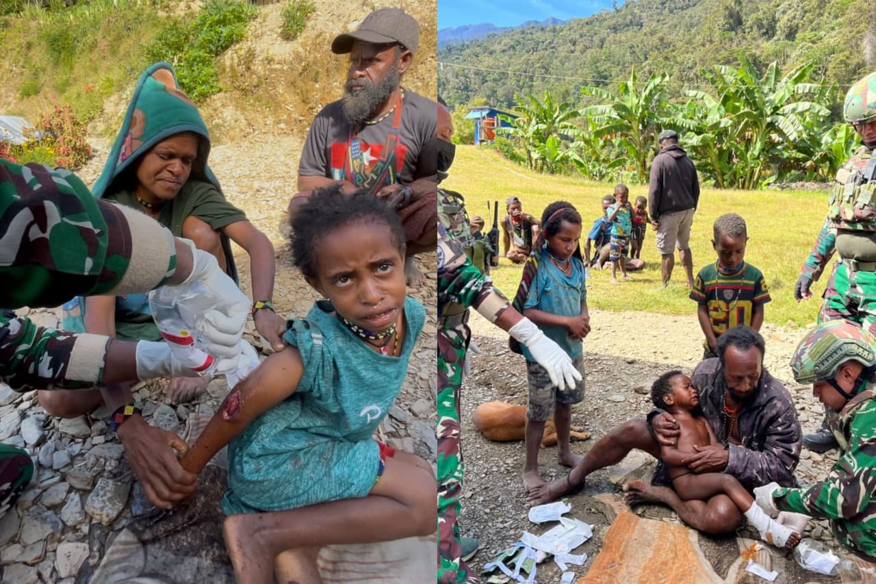 Menanggapi laporan tersebut, Tim Pengamanan Satgas TNI Kewilayahan bergerak cepat, menuju lokasi. Setibanya di lokasi, tenaga kesehatan Yonif 743/PSY langsung memberikan pertolongan pertama. Luka para korban dibersihkan dan ditangani secara darurat, terutama dua anak yang mengalami luka ringan. Proses penanganan dilakukan secara gotong royong bersama masyarakat dan tokoh adat setempat, mencerminkan solidaritas di tengah situasi sulit. Sementara itu, ambulans dari PMI bergerak menuju lokasi untuk mengevakuasi para korban ke fasilitas kesehatan yang lebih memadai.