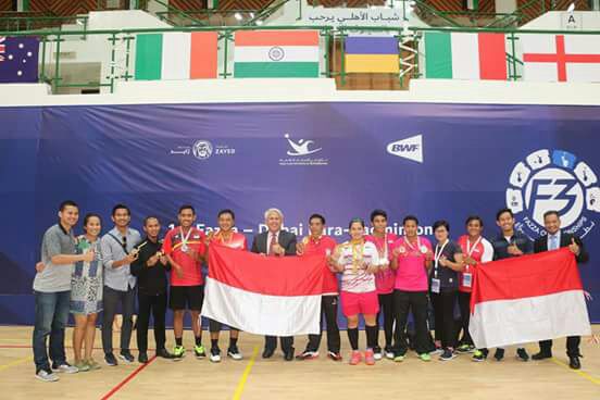 Dubai, Persatuan Arab Emirat: Tim Indonesia yang berkekuatan 8 pemain berhasil menjuarai Turnamen Para-Bulutangkis yang diselenggarakan oleh Dubai Club for People of Determination Turnamen bulu tangkis untuk para penyandang disabilitas pertama di Timur Tengah ini diadakan di Aula Olahraga Shabab Al Ahli Dubai Club di Al Mamzar Dubai, 12-15 April 2018.