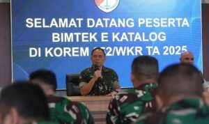 PORTALINDO.CO.ID | Penrem 052 Tangerang – Dalam upaya meningkatkan efisiensi, transparansi, dan akuntabilitas dalam proses pengadaan barang dan jasa, personil/staf pembuat Wabku jajaran Korem 052/Wkr mengikuti kegiatan sosialisasi e-katalog versi 6 di Aula Sudirman Makorem 052/Wkr di Jalan Boulevard Diponegoro 108, Kelapa Dua, Kab. Tangerang. Selasa (20/5/2025).