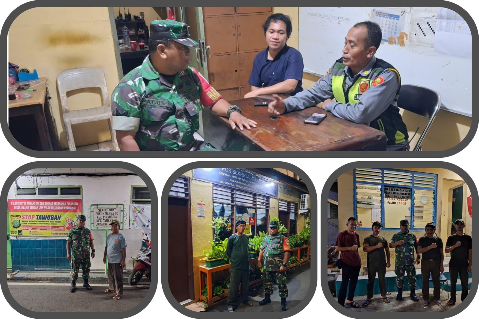 Portalindo.co.id | Kodam Jaya, Kodim 0503/JB _ Patroli /siskamling keliling Koramil 01/Tamansari yang dilakukan Babinsa Serma Agus Priyono bersama unsur Komduk, Wanra dan Masyarakat dengan tujuan mempererat sinergi antara TNI, Aparat Pemerintah dan Warga dalam menjaga keamanan lingkungan.