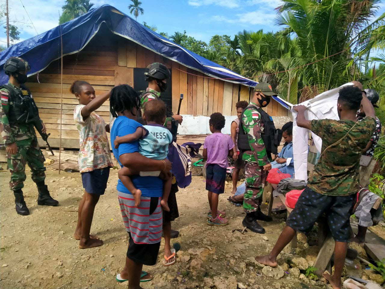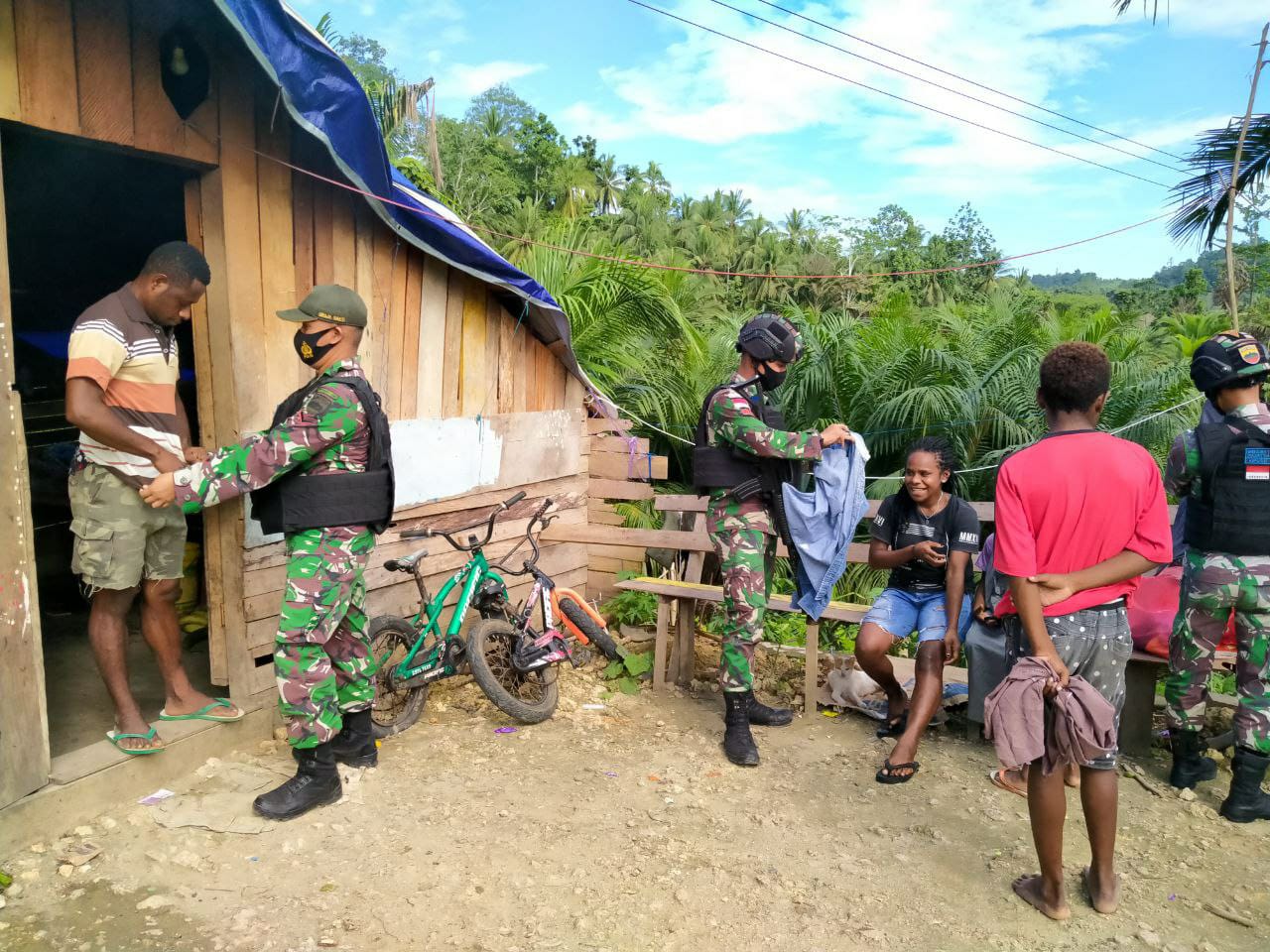 PORTALINDO.CO.ID, JAKARTA – Personel TNI Pos Koya Koso Satgas Pamtas Yonif 131/Brs membagikan pakaian dan sepatu kepada masyarakat di Kampung Nyamuk Distrik Abepura, Jayapura (29/7/2021).