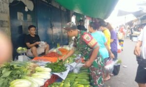 “Selain itu kami juga mengadakan interaksi dengan para pedagang dan pengunjung pasar guna mempertanyakan satu demi satu harga sembako. Sekaligus menyampaikan kepada pedagang untuk tidak menaikkan harga yang berlebihan.”Pinta Babinsa.