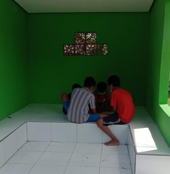 Keceriaan anak anak terlihat saat bermain di dalam Pos Kamling, “Ya tentunya saat pandemi Covid-19, mereka tetap harus mematuhi protokol kesehatan salah satunya dengan memakai Masker,”jelas Amin