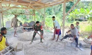 Seperti halnya yang dilakukan oleh Babinsa Koramil 1709-1/Serui Kodim 1709/Yawa Praka Cecep Adi Harja membantu Jemaat Rajawali Gereja GPDI Hosana dalam pembuatan Batu tela yang berlokasi di Kampung Ariepi II, Distrik Kosiwo, Kabupaten Kepulauan Yapen, Sabtu (27/4/2024).