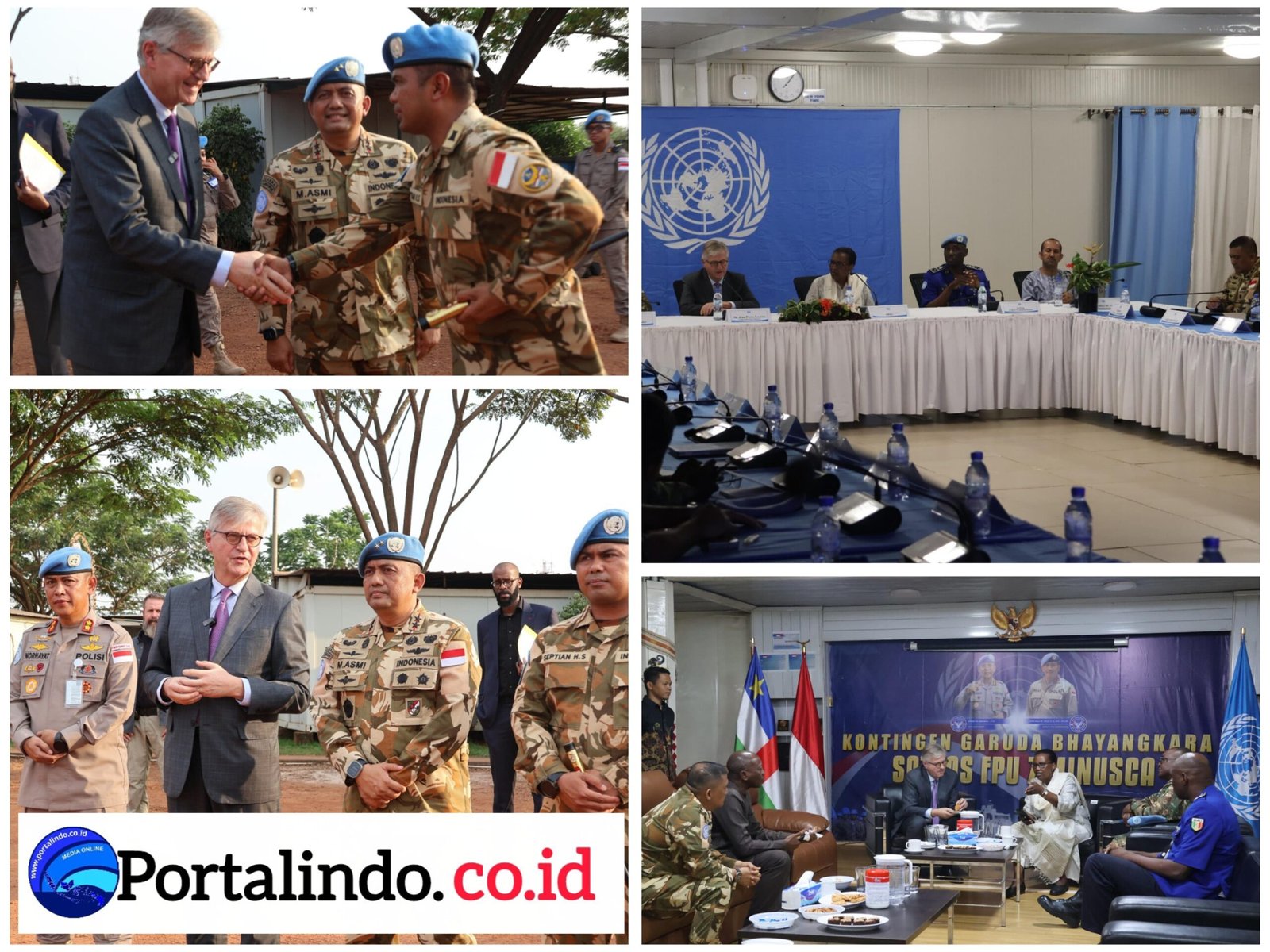 Portalindo.co.id | Bangui, Republik Afrika Tengah – Mayor Jenderal TNI Maychel Asmi, P.S.C., S.E., M.Han., selaku Deputy Force Commander Minusca menyambut kunjungan kerja Under Secretary General for the Department of Peace Operations (USG DPO) Mr. Jean-Pierre Lacroix beserta rombongan di Markas Kontingen Garuda XXXVII-L/Minusca, Bangui, Republik Afrika Tengah.