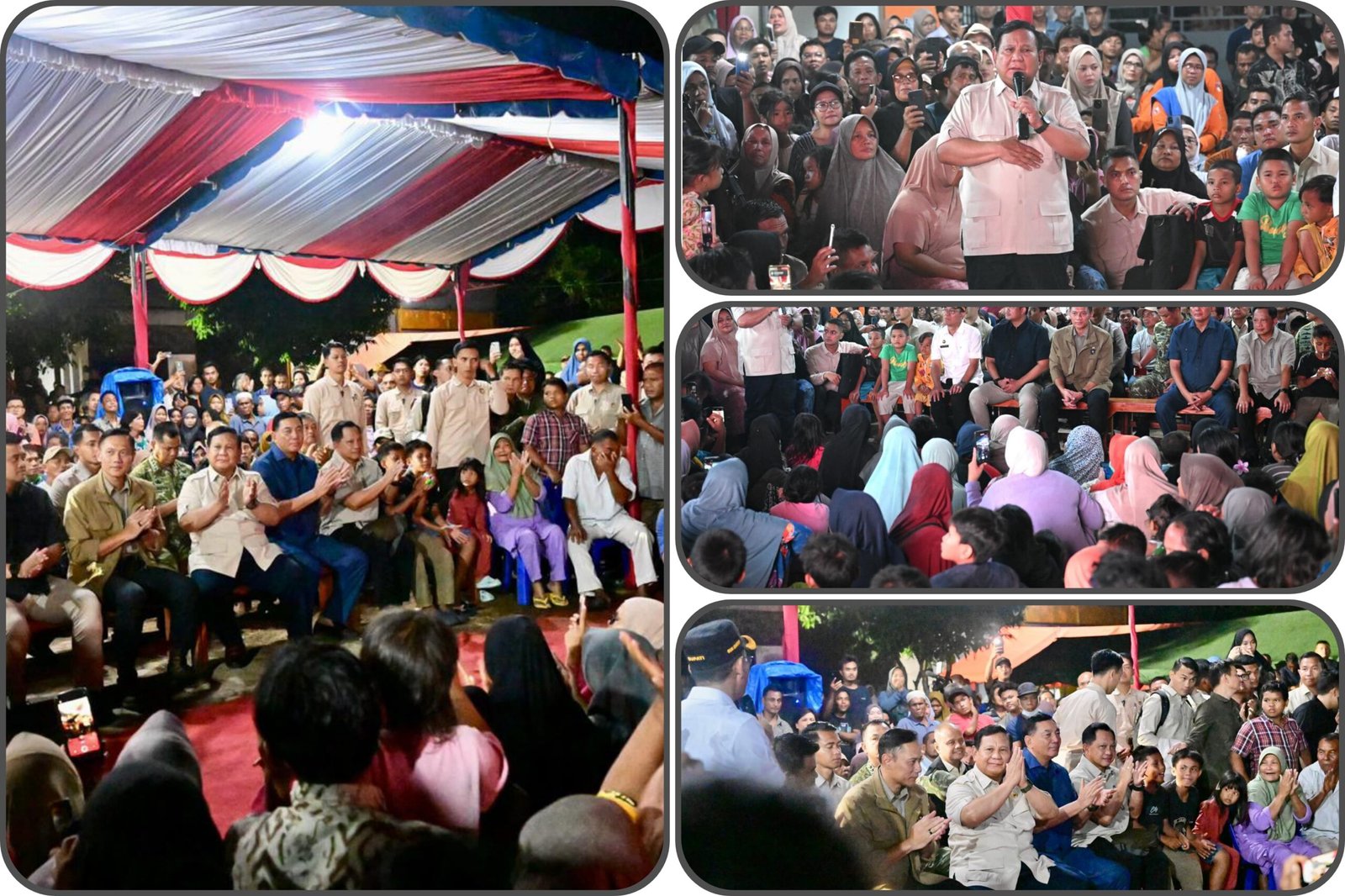 Dalam suasana sederhana namun penuh kehangatan, Presiden Prabowo berbaur langsung dengan warga. Tanpa perayaan meriah, malam tahun baru diisi dengan refleksi, doa, dan kebersamaan. Presiden menyapa anak-anak, berdialog dengan keluarga terdampak, serta menyampaikan empati dan semangat agar masyarakat tetap kuat dan tegar menghadapi cobaan.