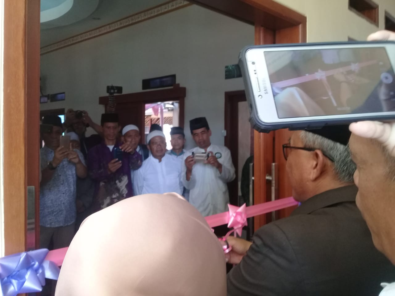 Kunjungan kerja ini untuk meresmikan Mushola Nurul Falah bertepatan juga dengan Maulid Nabi SAW. Terlihat dilokasi warga sekitar melakukan Pengajian.
