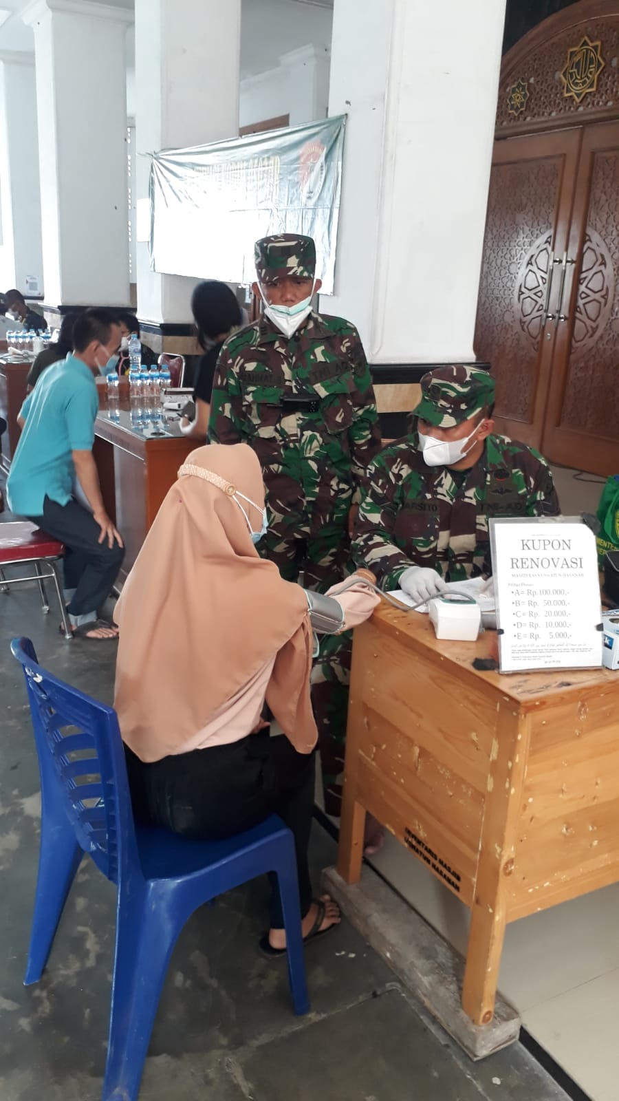 Giat pelaksanaan serbuan vaksinasi di pimpin Plh Danramil 04/CK Kapten Inf Rahmat yang di dampingi Bati Tuud Koramil 04/CK, Serma Suyanto. Kamis, 15 Juli 2021.