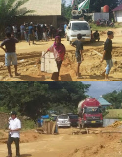 Warga blokade jalan di Desa Besu, Kecamatan Morosi, Kabupaten Konawe, ( Foto : portalindo.co.id)