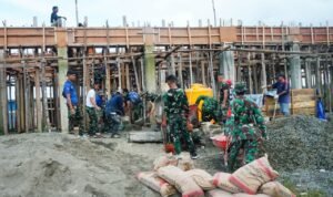 PORTALINDO.CO.ID | Biak ~ Dalam upaya memperkuat sinergi dan kebersamaan dengan masyarakat, sejumlah prajurit TNI dari Kodim 1708/BN dan TNI AU bersama warga saling bergotong royong melaksanakan pengecoran gedung Madrasah Aliyah (MA) DDI Babussalam Biak yang berlokasi di Kampung Mandouw, Distrik Samofa, Kabupaten Biak Numfor, Senin (8/7/2024).