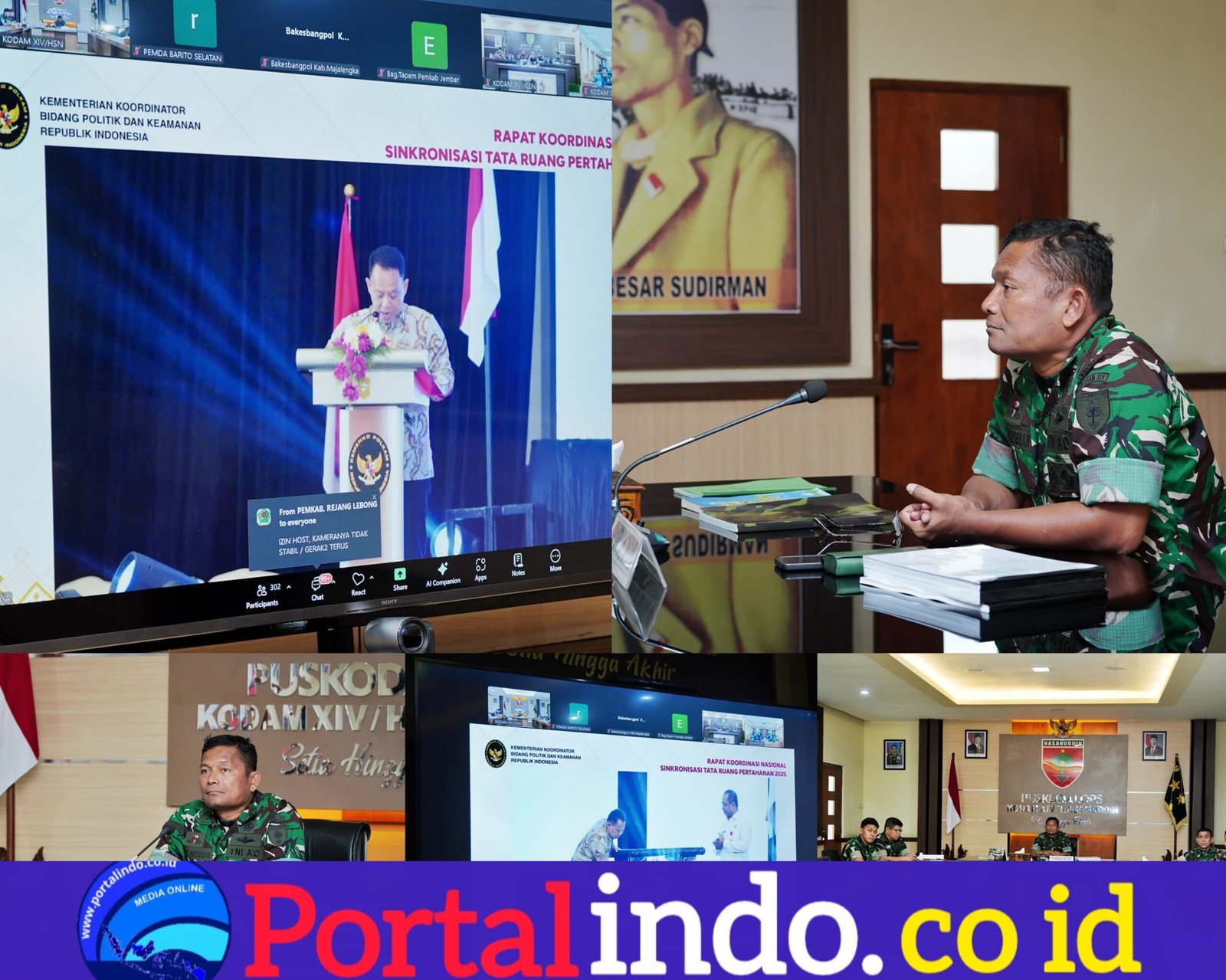 Portalindo.co.id | Makassar – Kepala Kelompok Staf Ahli (Kapoksahli) Pangdam XIV/Hasanuddin Brigjen TNI Musa David Marolop Hasibuan S.I.P, M.A.B., mengikuti Rapat Koordinasi (Rakor) Nasional Sinkronisasi Tata Ruang Pertahanan yang dipimpin oleh Deputi Bidang Koordinasi Pertahanan Negara dan Kesatuan Bangsa Kemenko Polkam RI Mayjen TNI Purwito Hadi Wardhono secara Video Conference (Vicon), bertempat di Ruang Vicon Puskodalops Makodam, Jl. Urip Sumoharjo, Kota Makassar. Rabu, (12/11/2025).